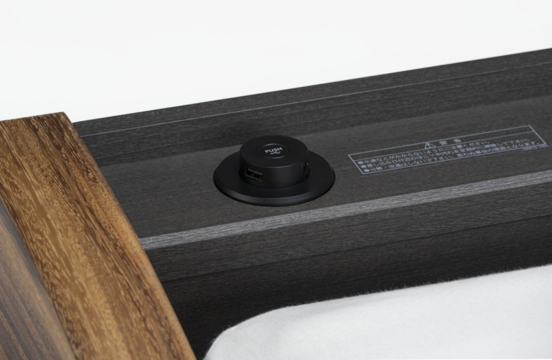 ゆるやかな流線形を描く美しいフォルムと天然木の量感が特徴的なデザイン