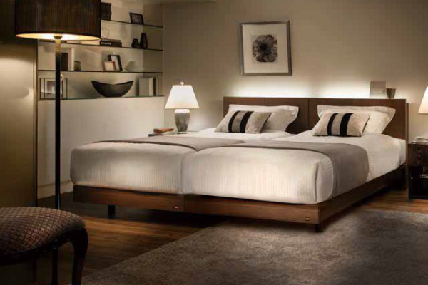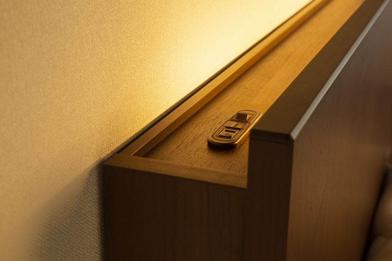 ホテルのような上質な空間を演出する、間接照明付きのベッドフレーム