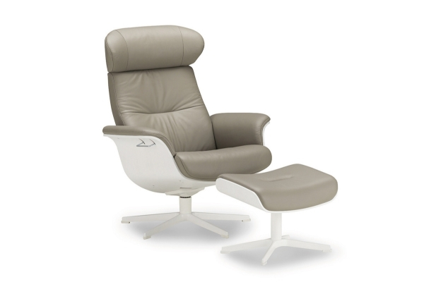 ガスシリンダー式の無段階リクライニング機能付。 チェアには、リターン機能付き回転ベースが内蔵(リターンメモリー)されています。
