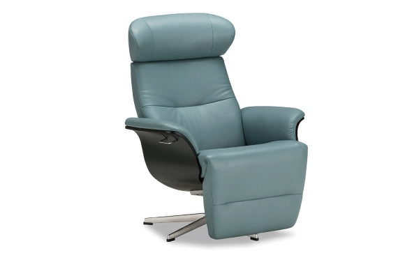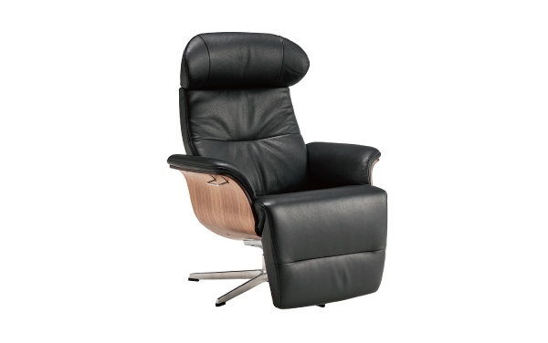 ガスシリンダー式無段階リクライニング機能、簡単操作の無段階フットレスト付き。 品格のある最高級のレザーを採用したモデル。